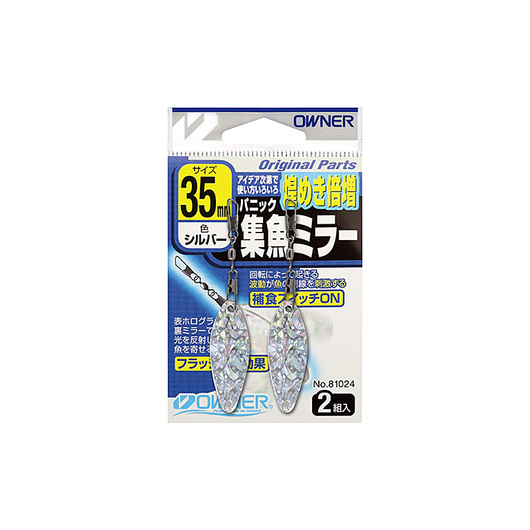 Το Owner Flash Fish Mirror είναι ένα πραγματικό θέλγητρο που δίνει ένταση στο τεχνητό μας είτε αυτό είναι jig ή Tenya ή Tairubber ή ακόμα και Minnow. Το μπροστινό ολόγραμμα και ο πίσω καθρέφτης αντανακλούν το φως και επιτυγχάνεται το φαινόμενο που το κάνει να αναβοσβήνει. Τα κύματα που προκαλούνται από την περιστροφή διεγείρουν τα ψάρια. Διαθέτει διπλό περιστρεφόμενο κούμπωμα για να μπορεί να φορεθεί σε πολλά σημεία.